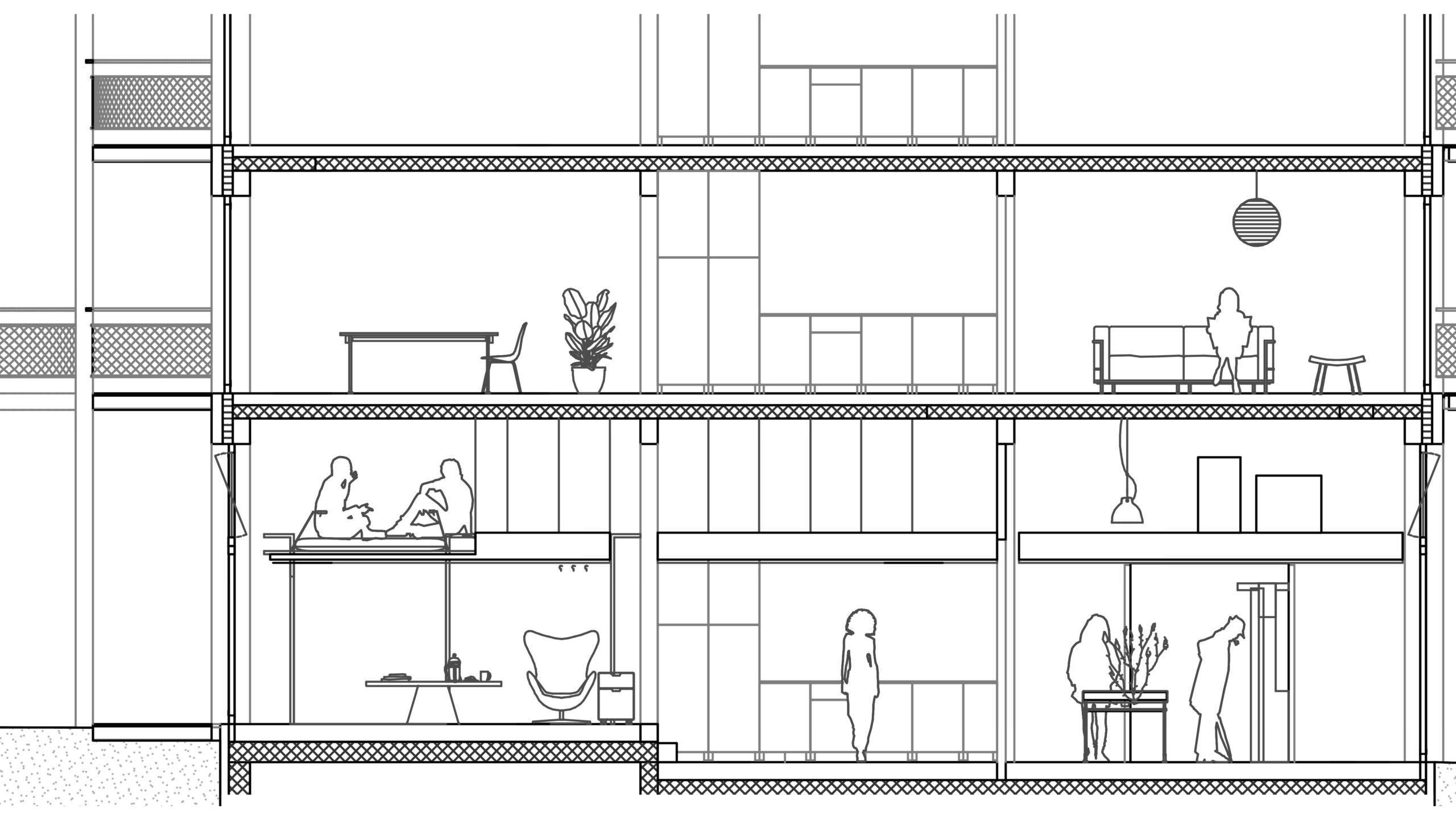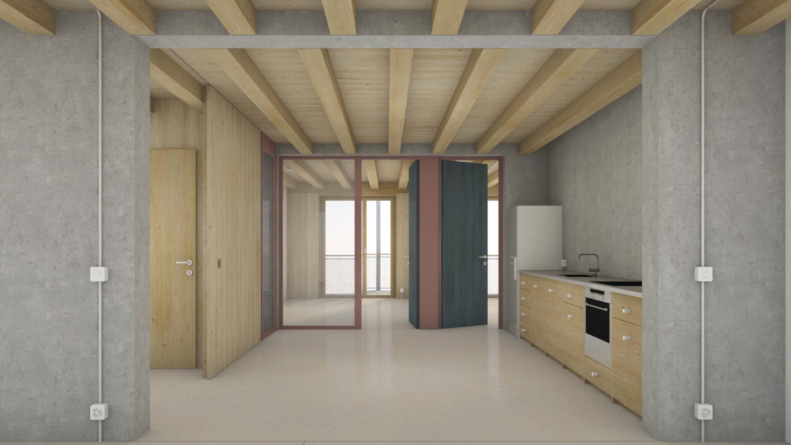 Wohnateliers und Wohnungen im Selbstausbau werden den Mieterinnen zum Selbstausbau übergeben. Den Mieterinnen ist es erlaubt, das Mietobjekt entsprechend ihren Bedürfnissen auszubauen.