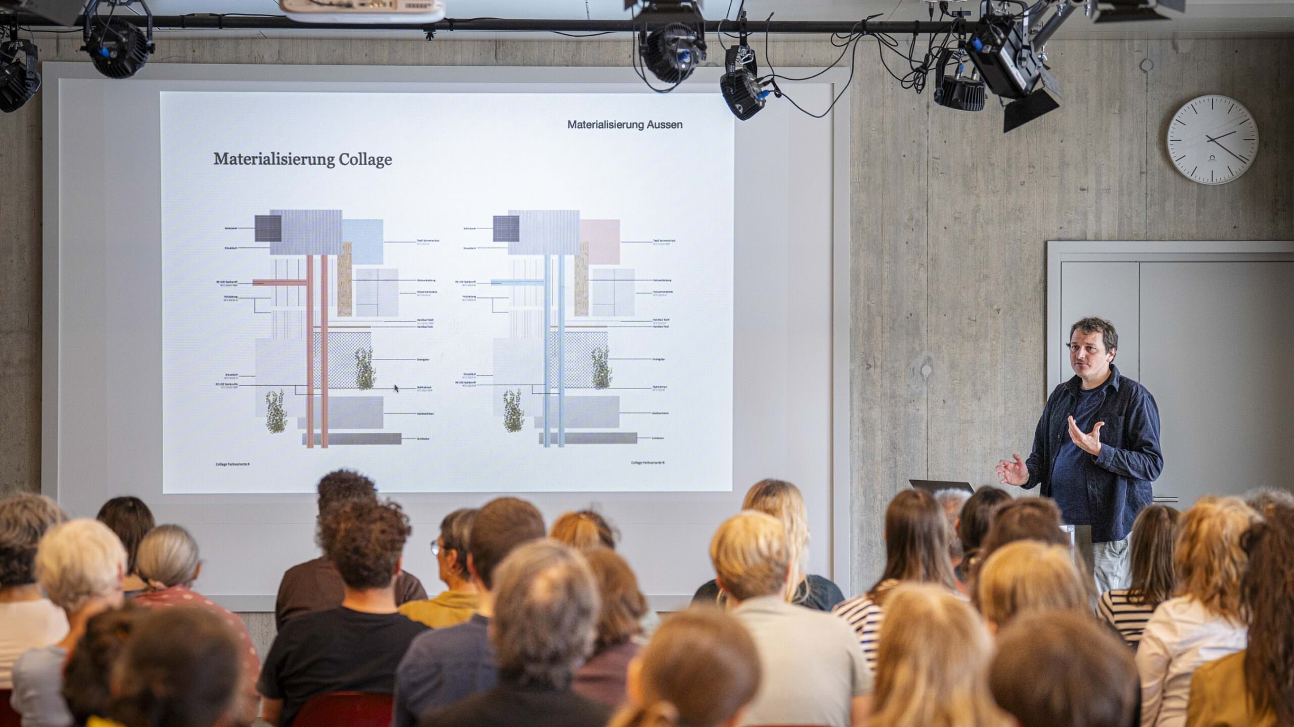 Die Materialwahl steht für einen bewussten und schonenden Umgang mit Ressourcen. Baustoffe werden sparsam und gezielt dort eingesetzt, wo sie funktional und ökologisch sinnvoll sind. Wo immer möglich, kommen Re-Use-Elemente zum Einsatz – etwa Fassaden- und Zementplatten im Außenbereich sowie in der Velohalle.